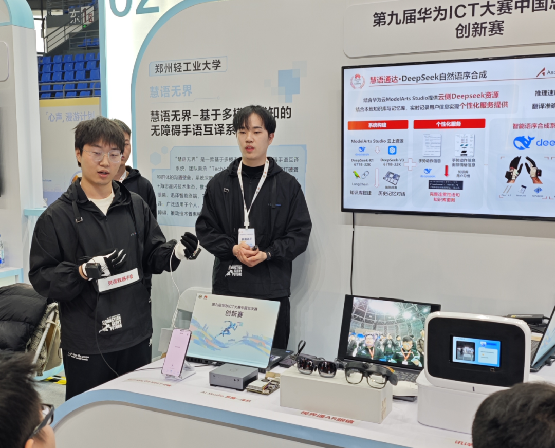 来自郑州轻工业大学的参赛团队,带来了一套基于多模态感知的无障碍手语互译系统,名叫“慧语无界”。