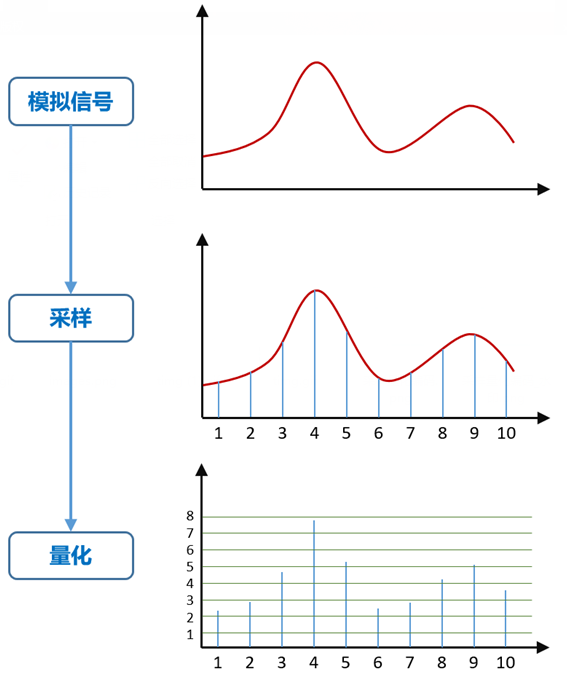 采集了视频数据之后,就要进行模数转换,将模拟信号变成数字信号。其实现在很多都是摄像机(摄像头)直接输出数字信号。