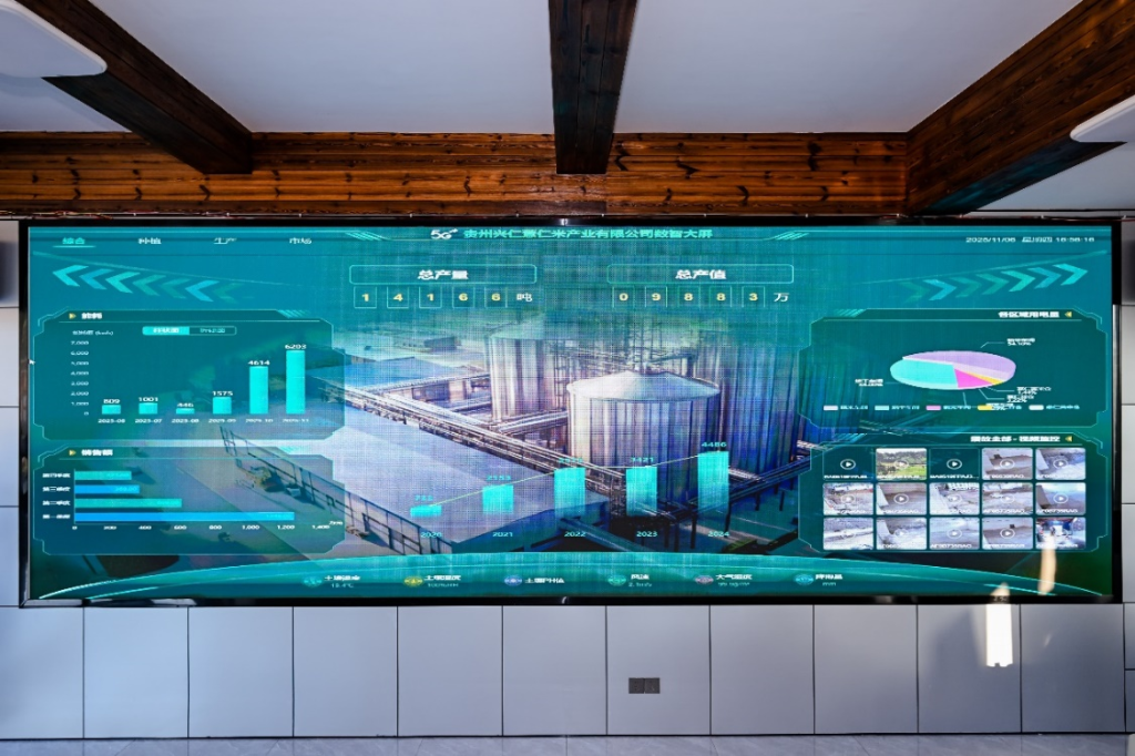这段时间,正是薏仁米的成熟收割期。在大普村的标准化薏仁米种植示范基地里,收割机正忙着在田里来回穿梭。与此同时,兴仁薏仁米产业有限公司的数智大屏上,不仅农田实景一目了然,气象变化、苗情长势、土壤状况以及虫情动态等关键数据也尽收眼底。据贵州移动行业经理李定刚介绍,这是贵州移动为该公司量身打造的基于5G的薏仁米全产业链一体化管控平台,通过5G、云计算、大数据及物联网等信息技术的深度应用,实现从田间到车间再到市场的闭环管理。