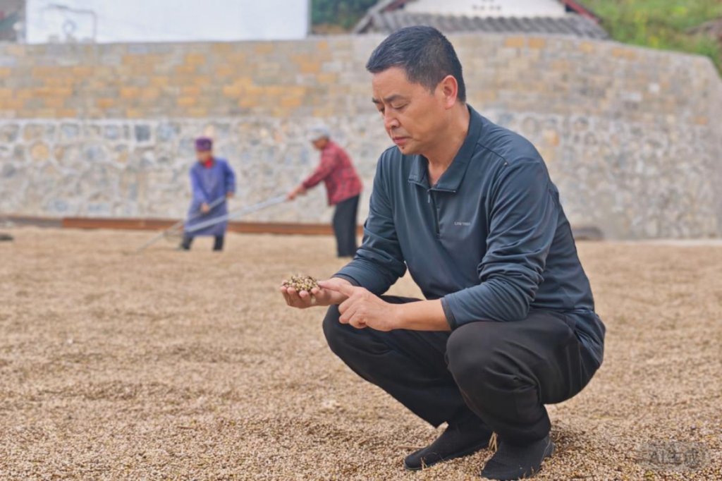 兴仁薏仁米产业有限公司董事长夏召和正在查看从农户收购来的薏仁米