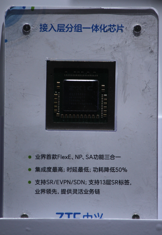 系统设备侧,中兴的分组交换套片(用于核心路由器)已经迭代演进出了多代产品。最新推出的单芯片交换容量可以达到8.96Tbps,支持最大2000T的设备集群交换。