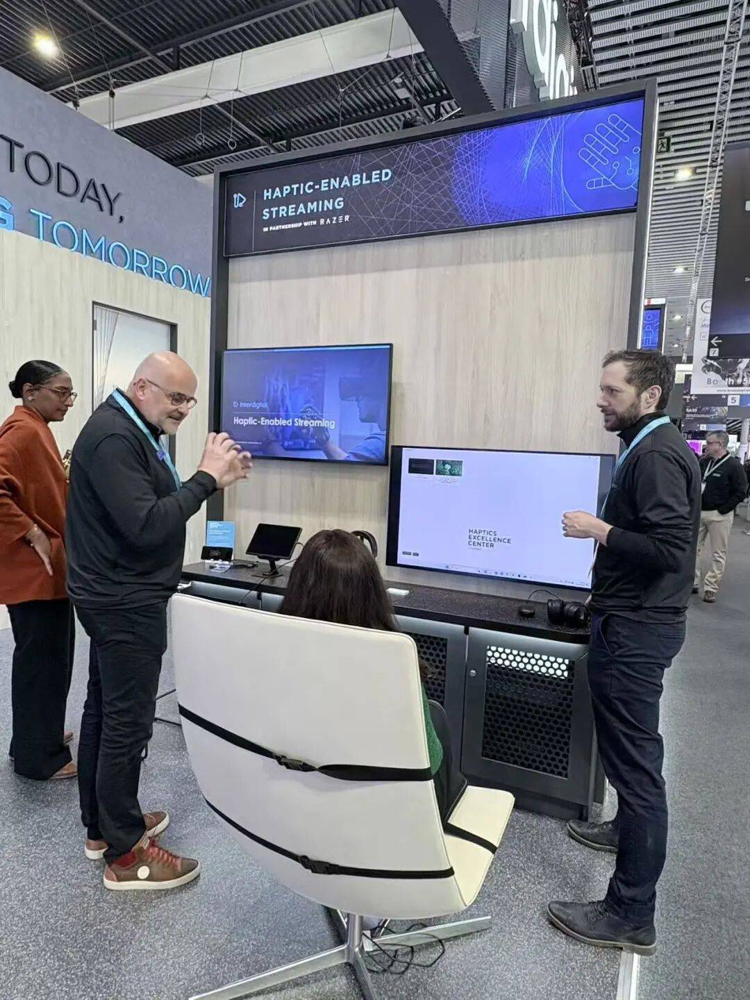 但这远不止是一个演示。近日,InterDigital与雷蛇宣布成立触觉反馈卓越中心(Haptic Excellence Center)。我们的目标明确而坚定:扫清阻碍触觉反馈扩展的障碍,让这一媒体形态像音频和视频一样普及。同时,我们正在联合开发一个触觉反馈流媒体平台,涵盖数据创作、编码、同步与传输的每一个环节。此外,我们与高校及行业领导者合作,推动相关教育与技能发展,让这一令人兴奋的媒体形式被更多人掌握和应用。